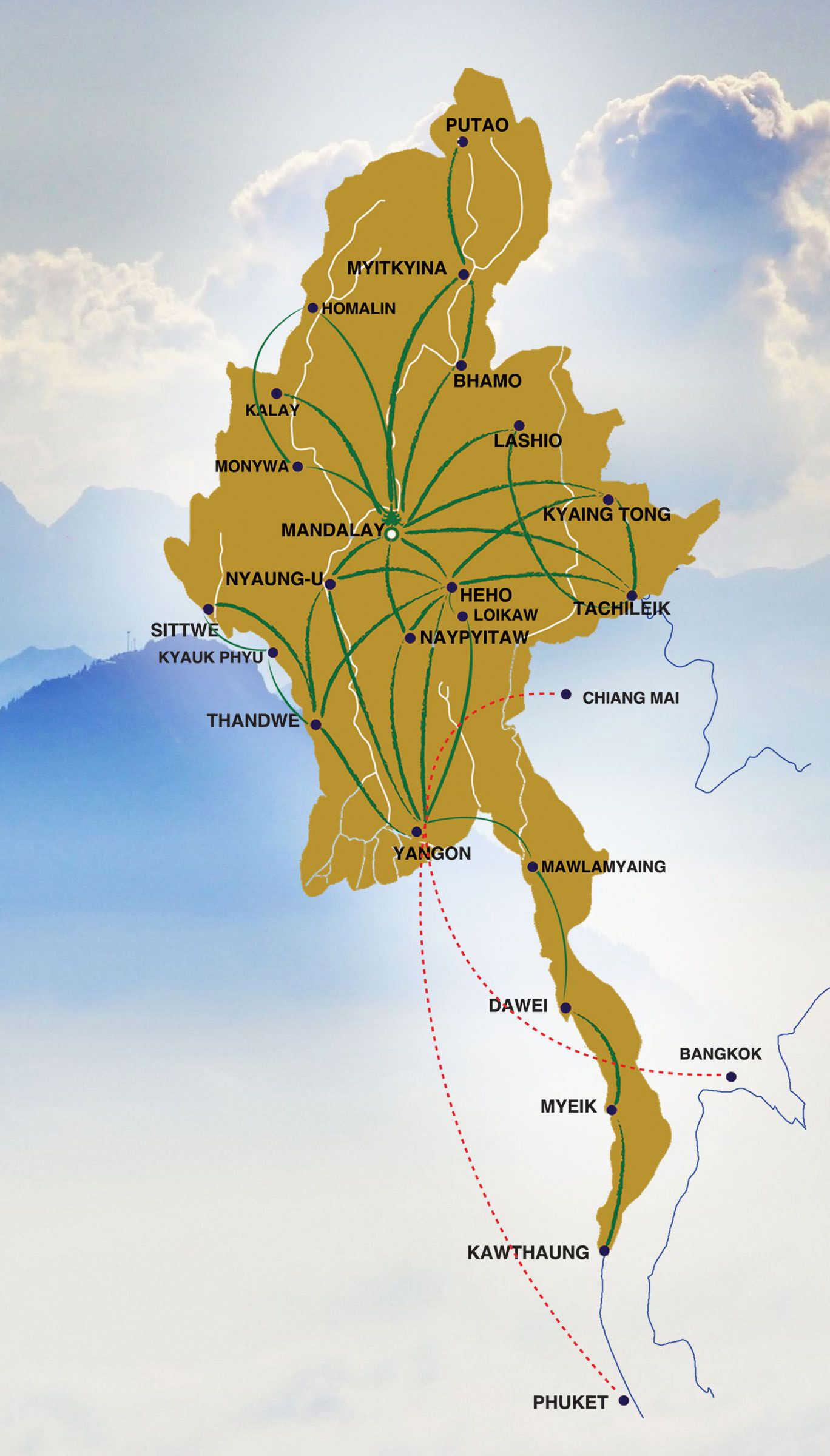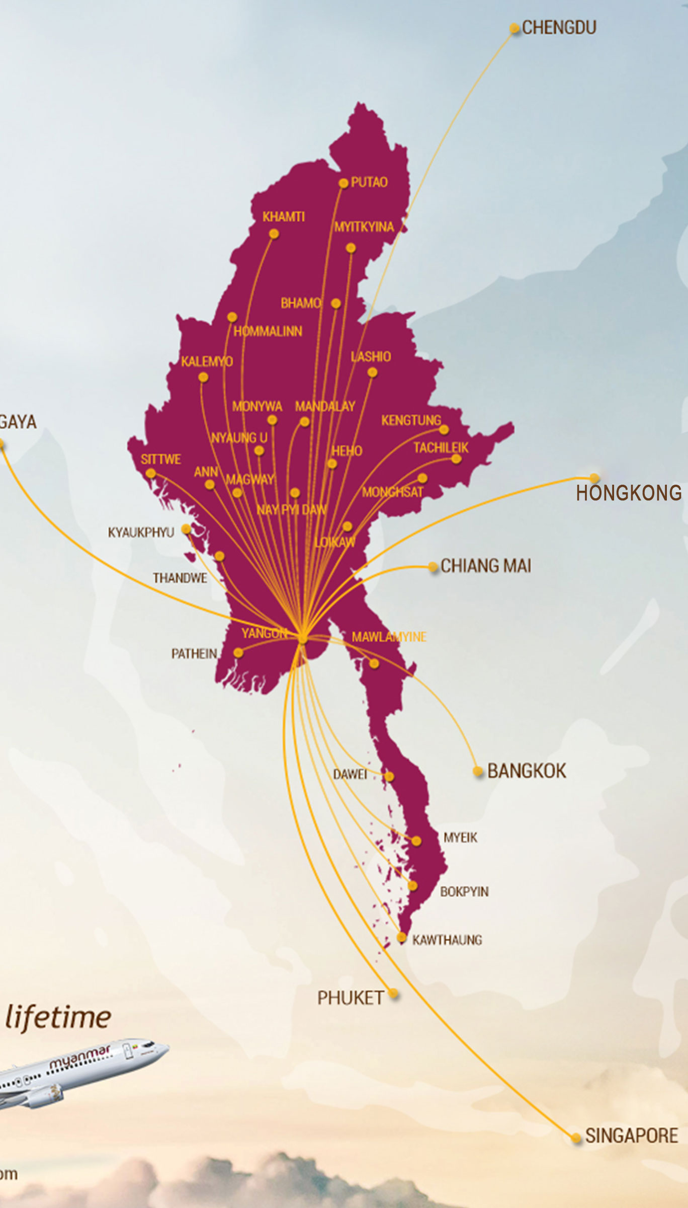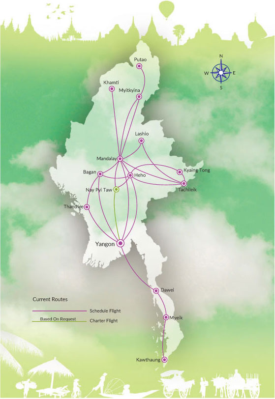 Established in February 2014, and bought the shares of Yangon Airways Company which has been flying over 23 years established in Oct 2019 and operated to 14 destinations.