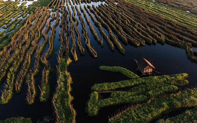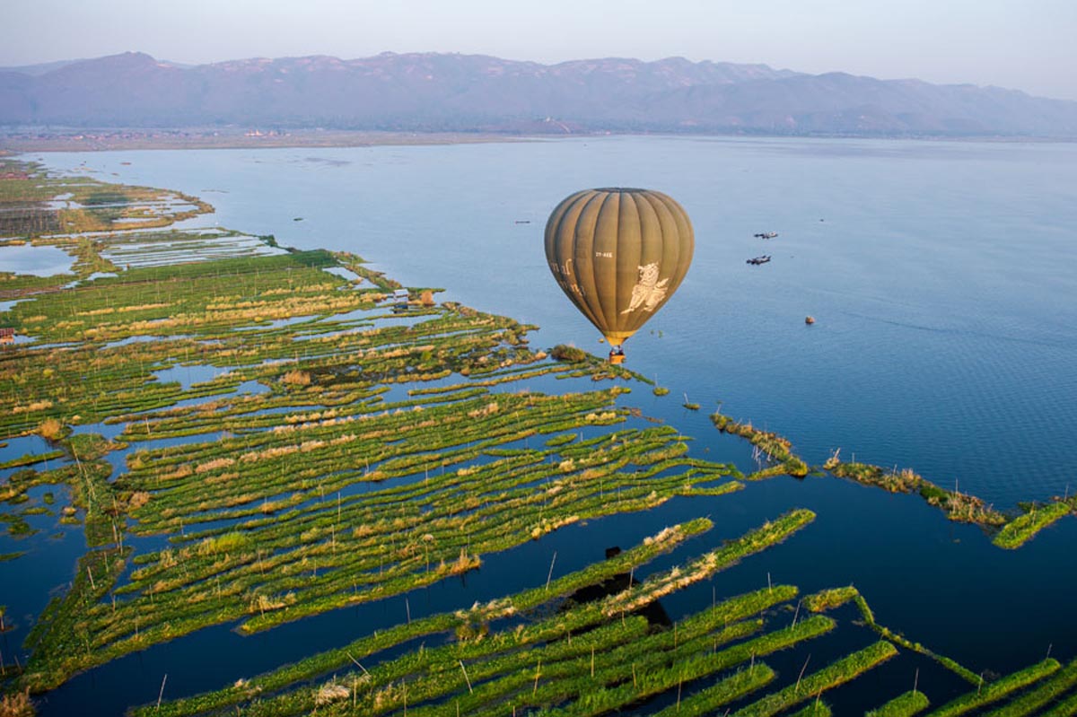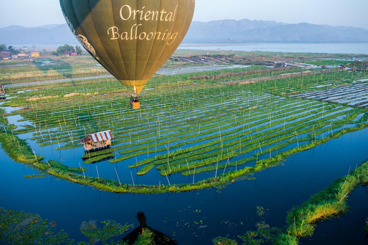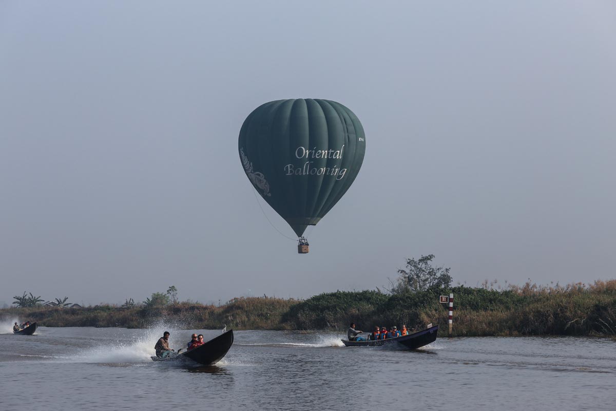 The Inle Lake region is one of Myanmar’s most anticipated destinations and all the hype is justified. Picture a vast, serene lake – 13.5 miles long and seven miles wide – fringed by marshes and floating gardens, where stilt-house villages and Buddhist temples rise above the water, and Intha fisher folk propel their boats along via their unique technique of leg-rowing. Oriental ballooning presented a beautiful way to see magical lake from the sky !!!