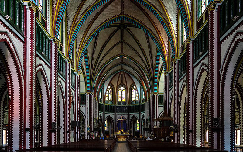 Designed by a Dutch architect, St Mary’s is the largest cathedral in Myanmar. Construction commenced in 1895 and was completed in 1899; the cathedral’s interior is richly decorated and features examples of exquisite stained-glass windows.
